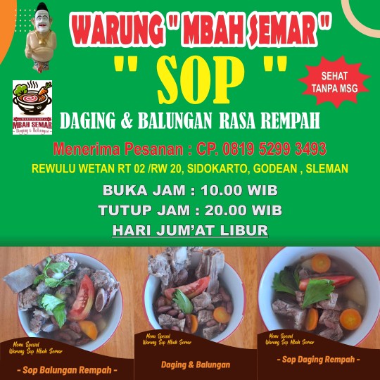 Satu lagi nih bestie kulineran enduls yang ada di Jogja. Enak , murah dan tentunya sehat gais. yuk langsung aja, jadi namanya adalah Warung Sop MBAH SEMAR Sehat Tanpa MSG. Wuidih dari namanya aja udah kelihatan kan kalau makan disini tentunya ...