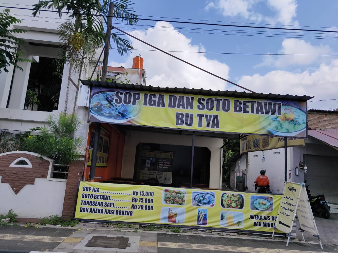 Hay foodlover Jogja.. Apa kabarnya nih semoga kalian baik dan sehat selalu agar bisa terus berburu kuliner- kuliner enak di kota gudeg ini. Ragam kuliner yang tersebar di Kota Jogja itu buanyak banget gaes. Jadi kalian itu bisa dengan mudah mencari kuliner dari berbagai daerah yang tentunya bisa menggoyang lidah foodlover semua. Dan kali ini kita punya info terbaru nih buat kalian semua yang request info kuliner asli daerah yang enak di Jogja gaes. Kali ini kita ada info kuliner yang berasal dari betawi yaps apalagi kalau bukan soto betawi. Soto betawi sendiri adalah soto yang disajikan dengan kuah santan gaes. Isian Soto Betawi umumnya terdiri atas daging sapi, jeroan, organ sapi, seperti mata sapi, torpedo, dan hati. Soal rasa hemm mak nyus lah pokonya. Naa di Jogja sendiri kini sudah ada nih gaes tempat kuliner yang menyediakan menu soto betawi yang enak dan remended banget namanya adalah SOP IGA DAN SOTO BETAWI BU TYA yang berlokasikan di Jl. Prof. DR. Soepomo Sh No.7, Warungboto, Kec. Umbulharjo, Kota Yogyakarta. Selain menu soto betawi kalian juga bisa nyobain menu yang lainnya dan gak kalah enak gaes , ada sop iga, nasi goreng sapi, nasi goreng udang, tongseng sapi dan masih ada yang lainnya gaes. Yaudah kalai begitu langsung aja yuk kita simak menu dan resto nya seperti apa.